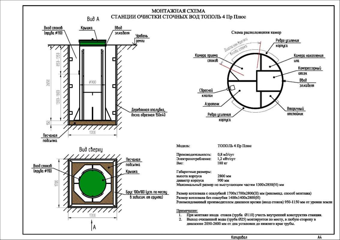 Станция ТОПОЛЬ 4 – это инновационный септик на 3 или 4 человека российского производства.
