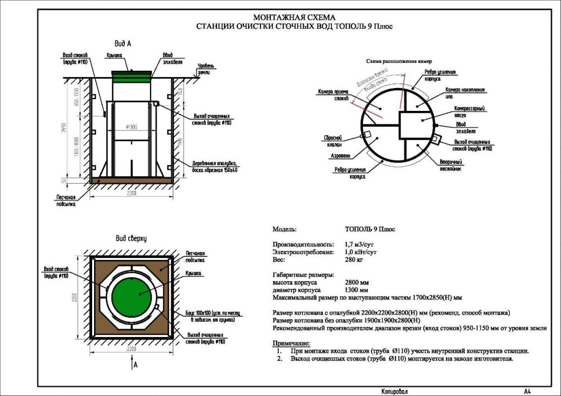 Станция автономной канализации ТОПОЛЬ 9 превосходит обычные септики на 8 или 9 человек по всем параметрам и техническим характеристикам.