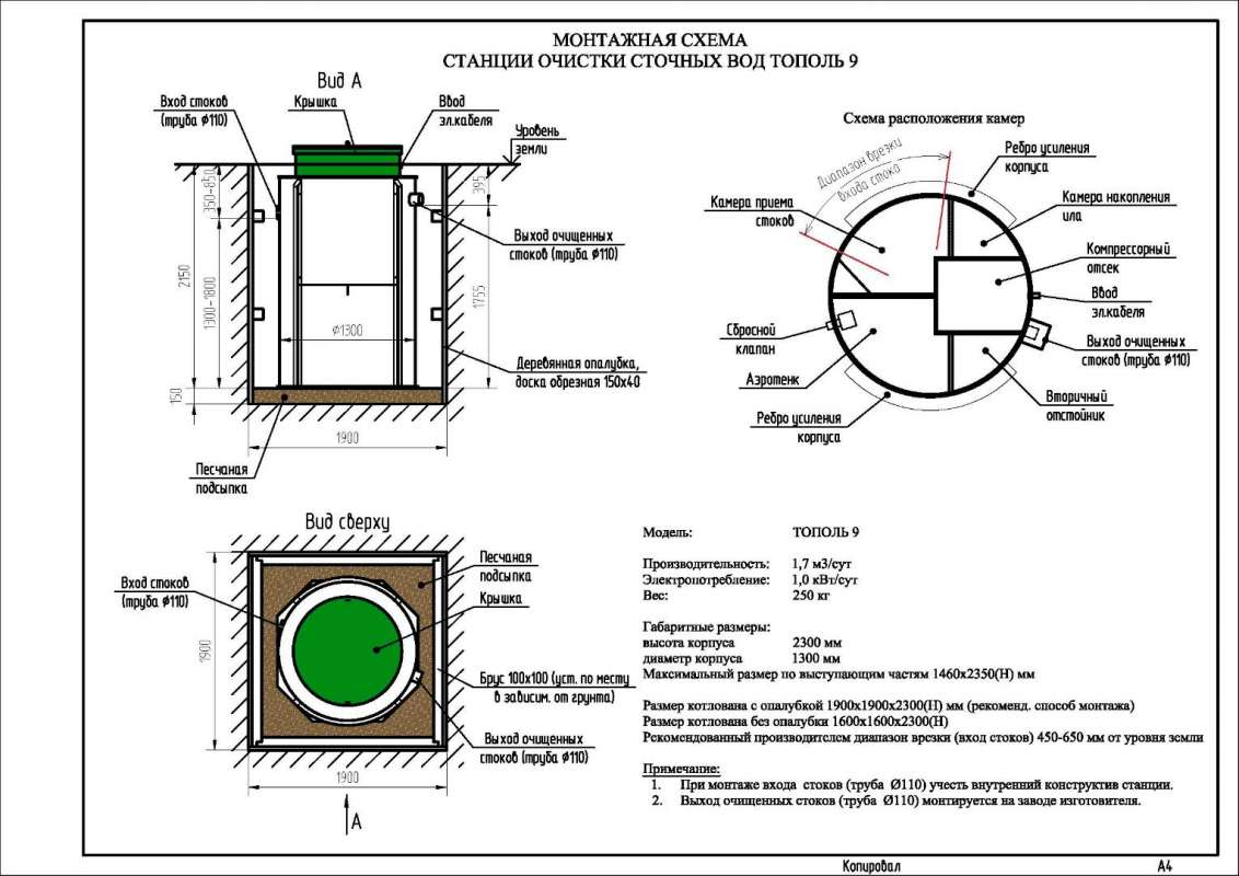 Станция автономной канализации ТОПОЛЬ 9 превосходит обычные септики на 8 или 9 человек по всем параметрам и техническим характеристикам.